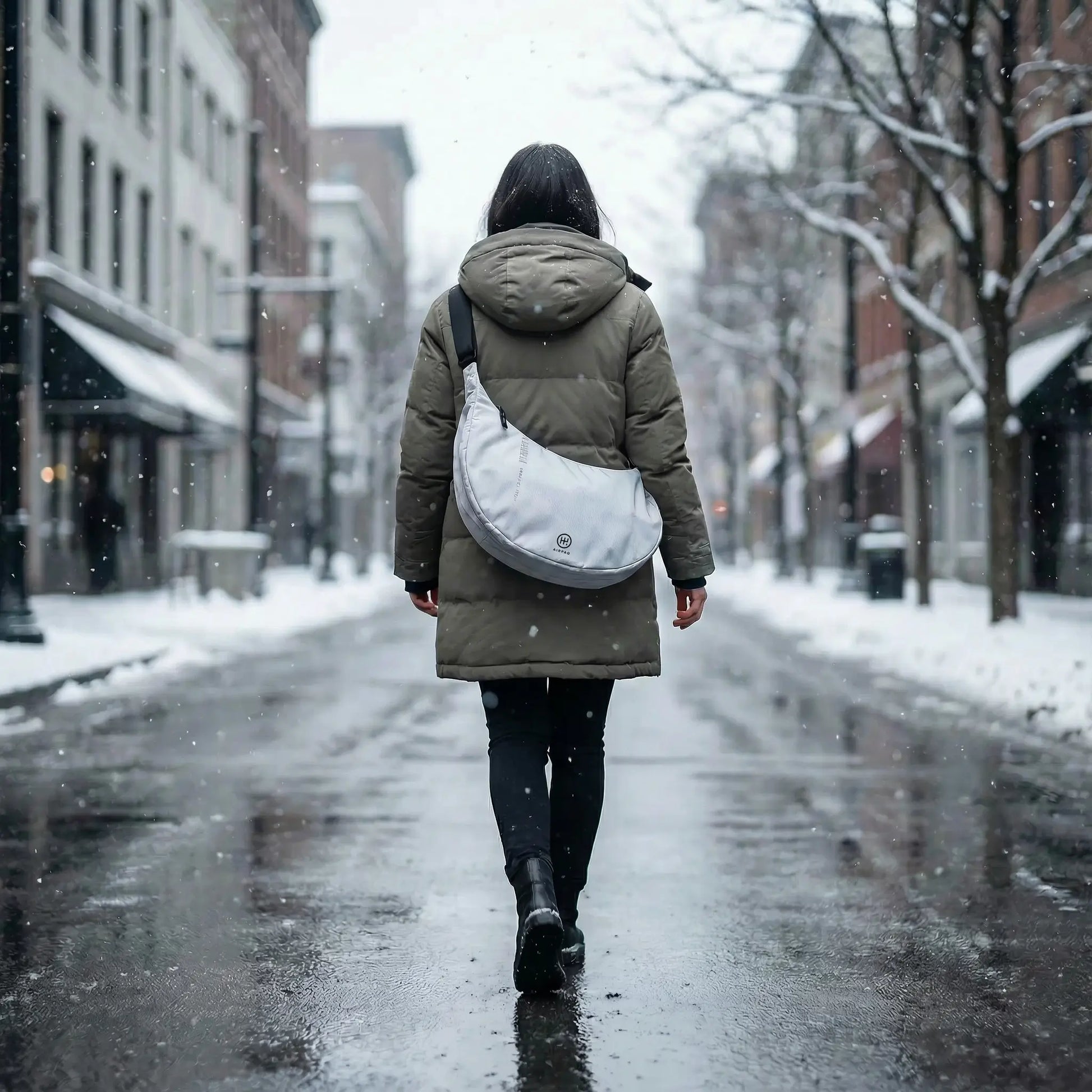 Das Material der Moonbaq ist vollständig wasserfest und hält deinen Inhalt auch bei starkem Regen trocken.