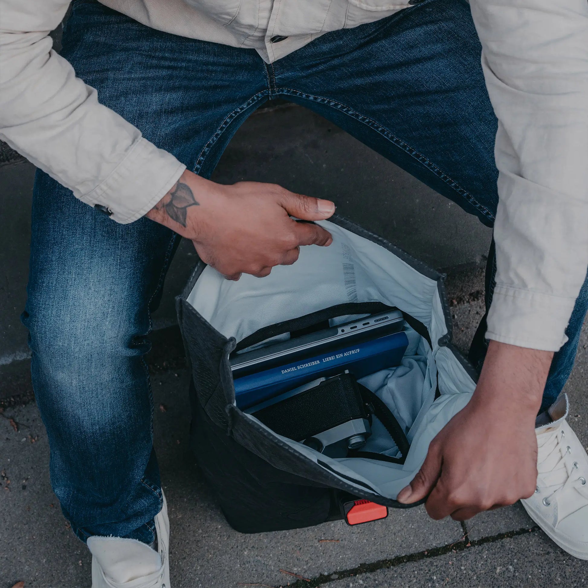 Wir glauben an langlebige Produkte. Aber wir wissen auch: Irgendwann kommt jedes Material an seine Grenze. Deshalb haben wir bei der Entwicklung nicht nur an die Nutzung gedacht – sondern auch an das Ende. Wenn dein Airpaq irreparabel beschädigt ist, nehmen wir ihn zurück. Du erhältst einen Gutschein, und wir führen die verwertbaren Materialien zurück in den Kreislauf.
