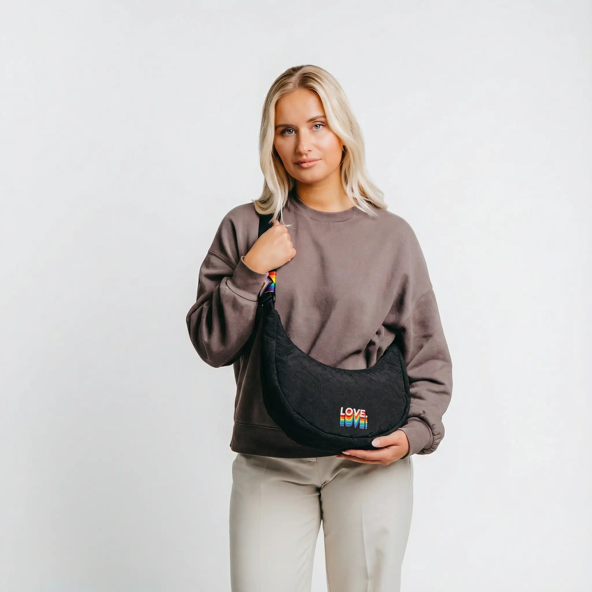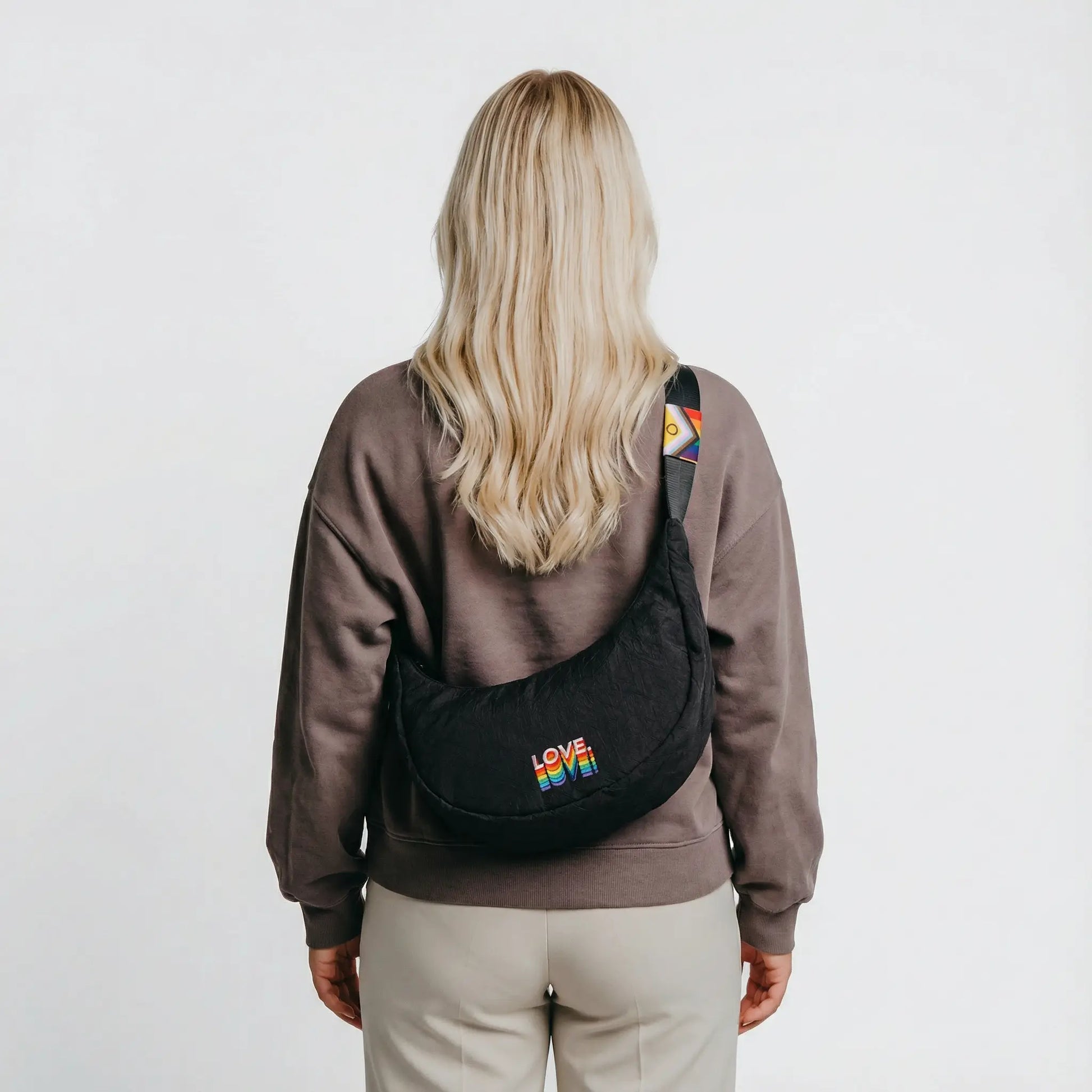The compact crossbody bag in the Pride edition · 3 L volume · Wear a symbol for diversity, acceptance and sustainability.