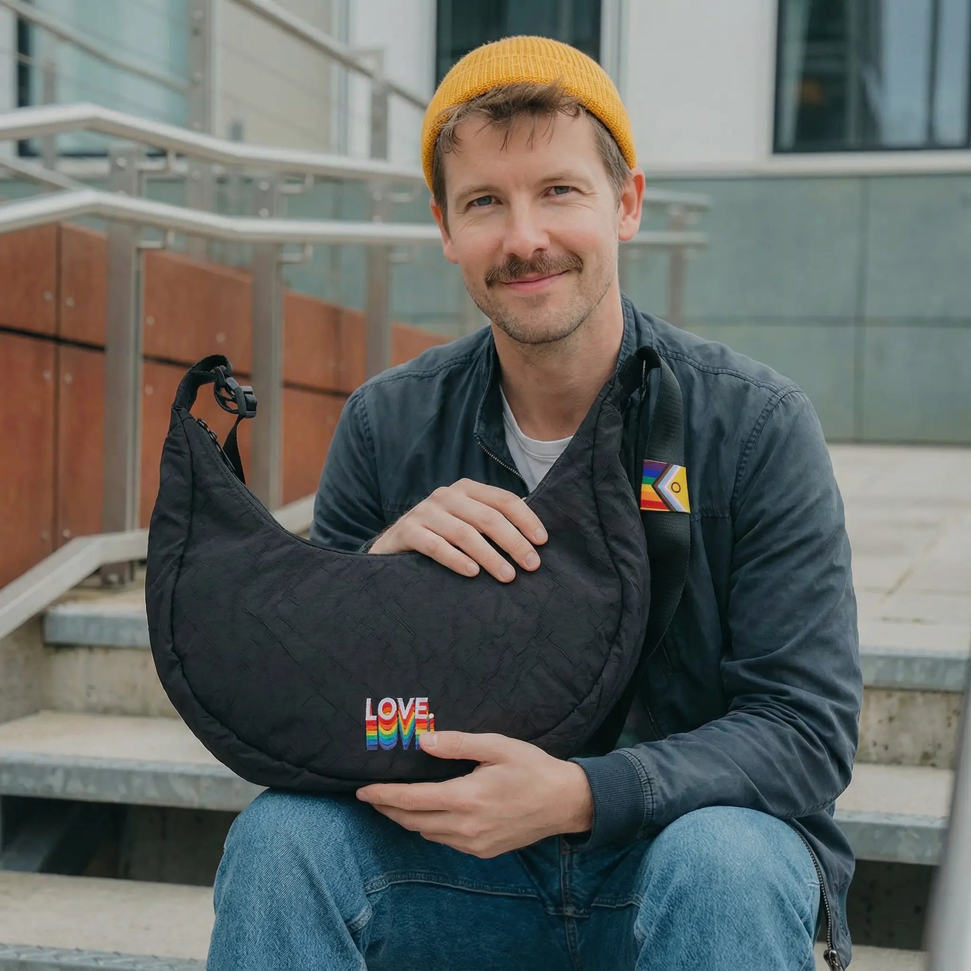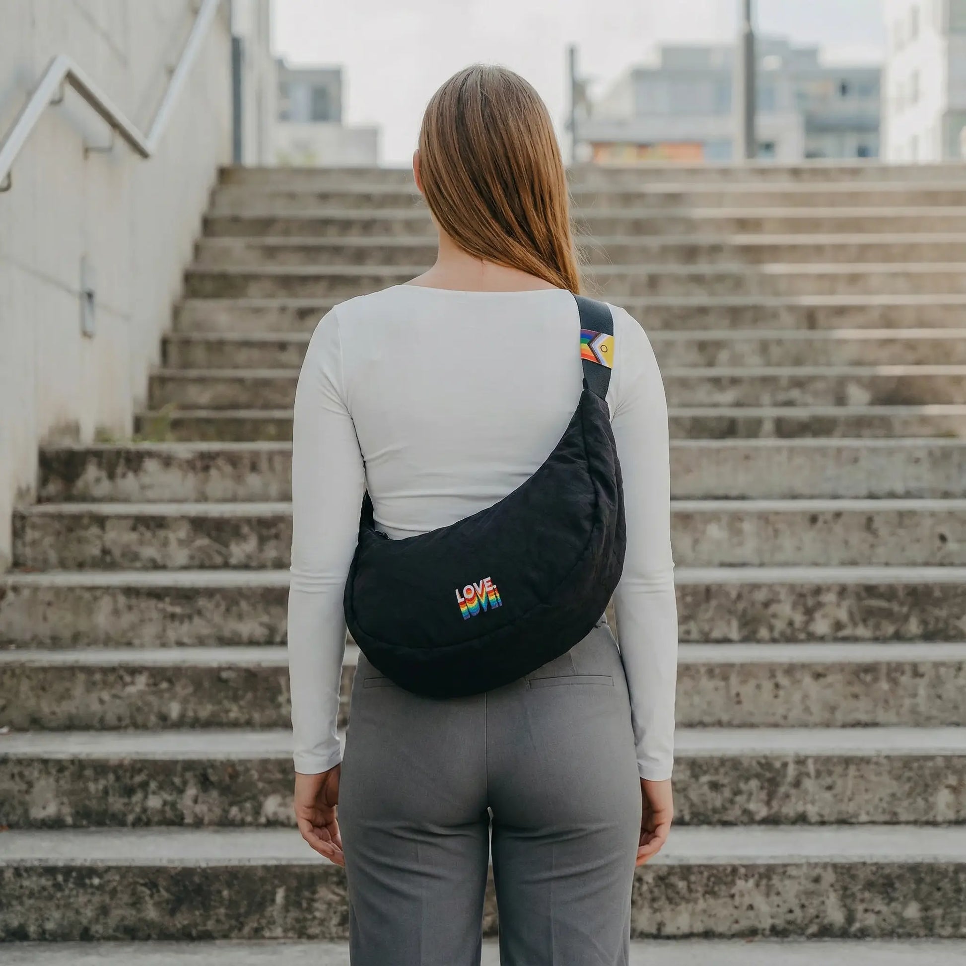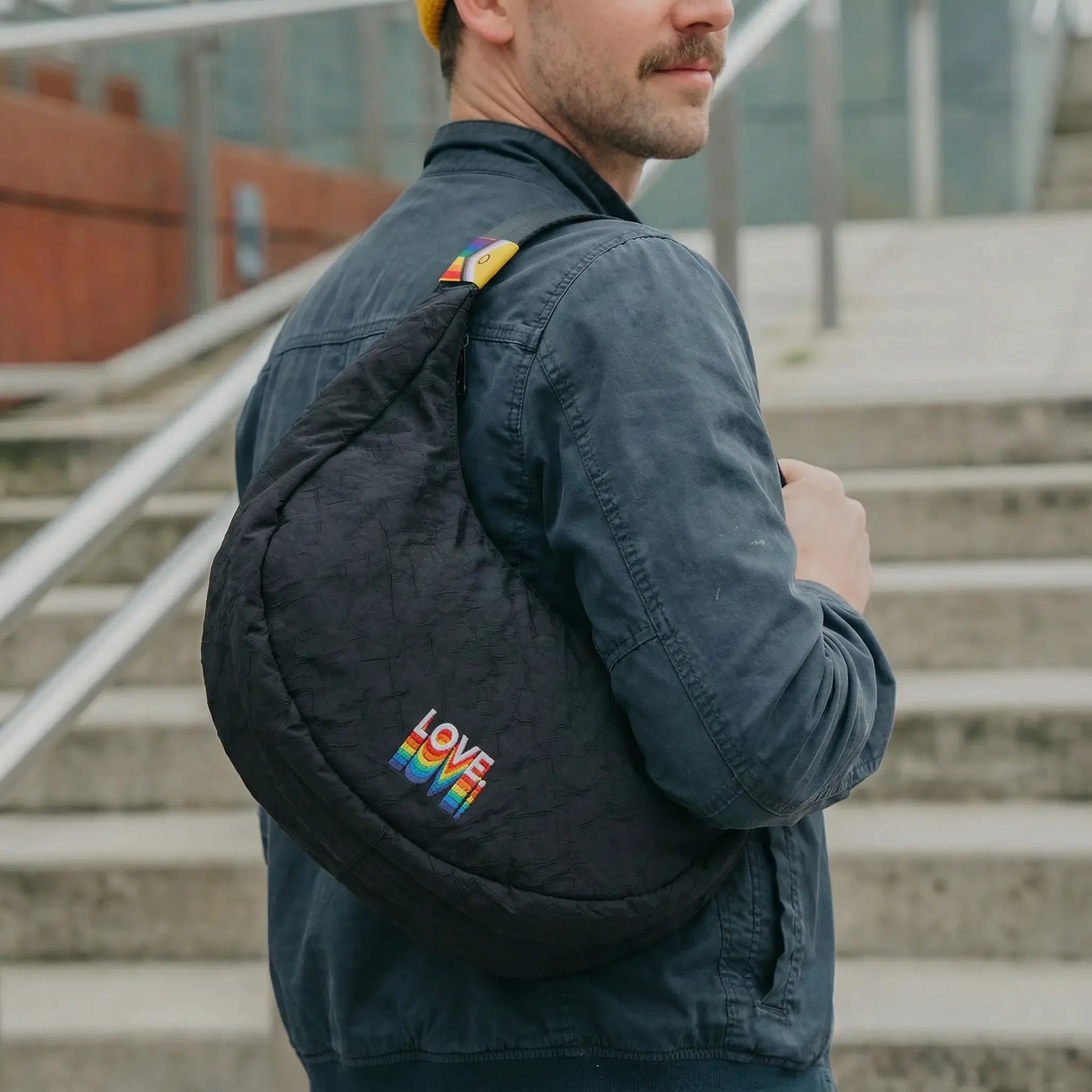 The Pride Edition crossbody bag made from airbags · 9 L volume · Wear a symbol for diversity, acceptance and sustainability.