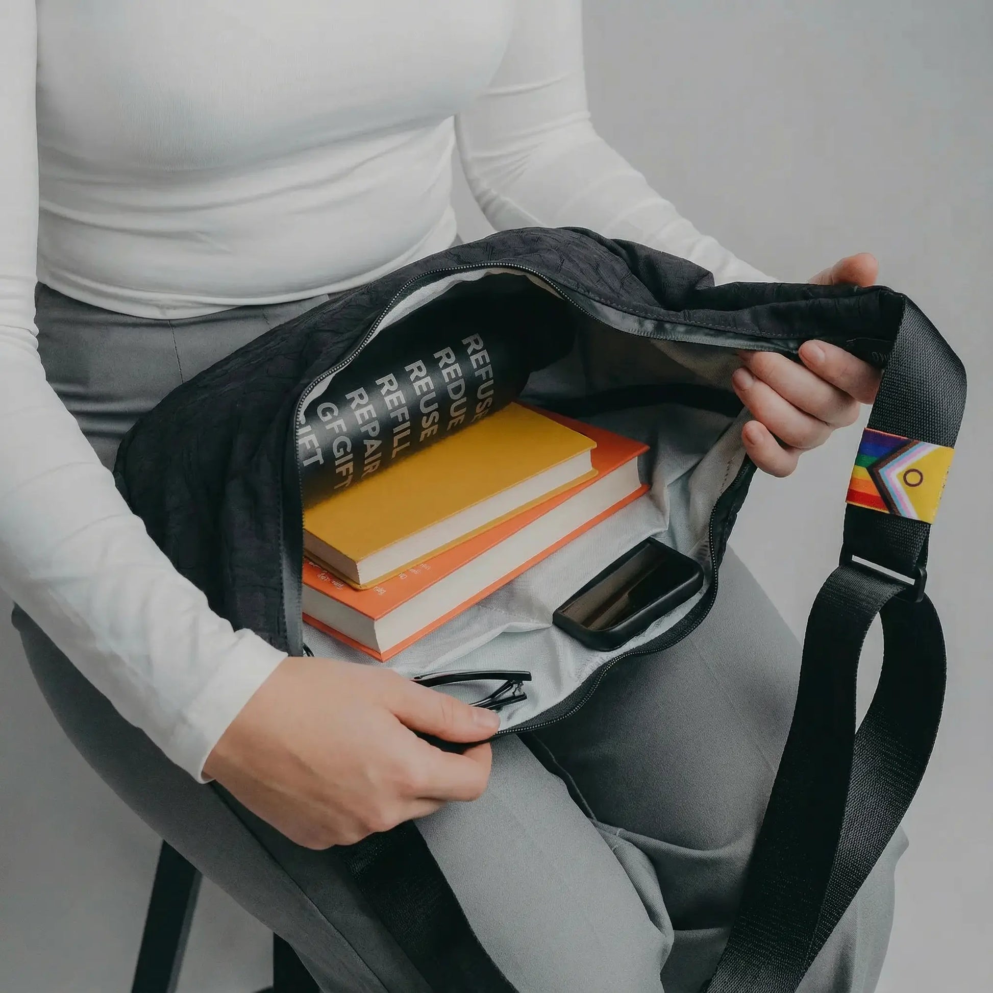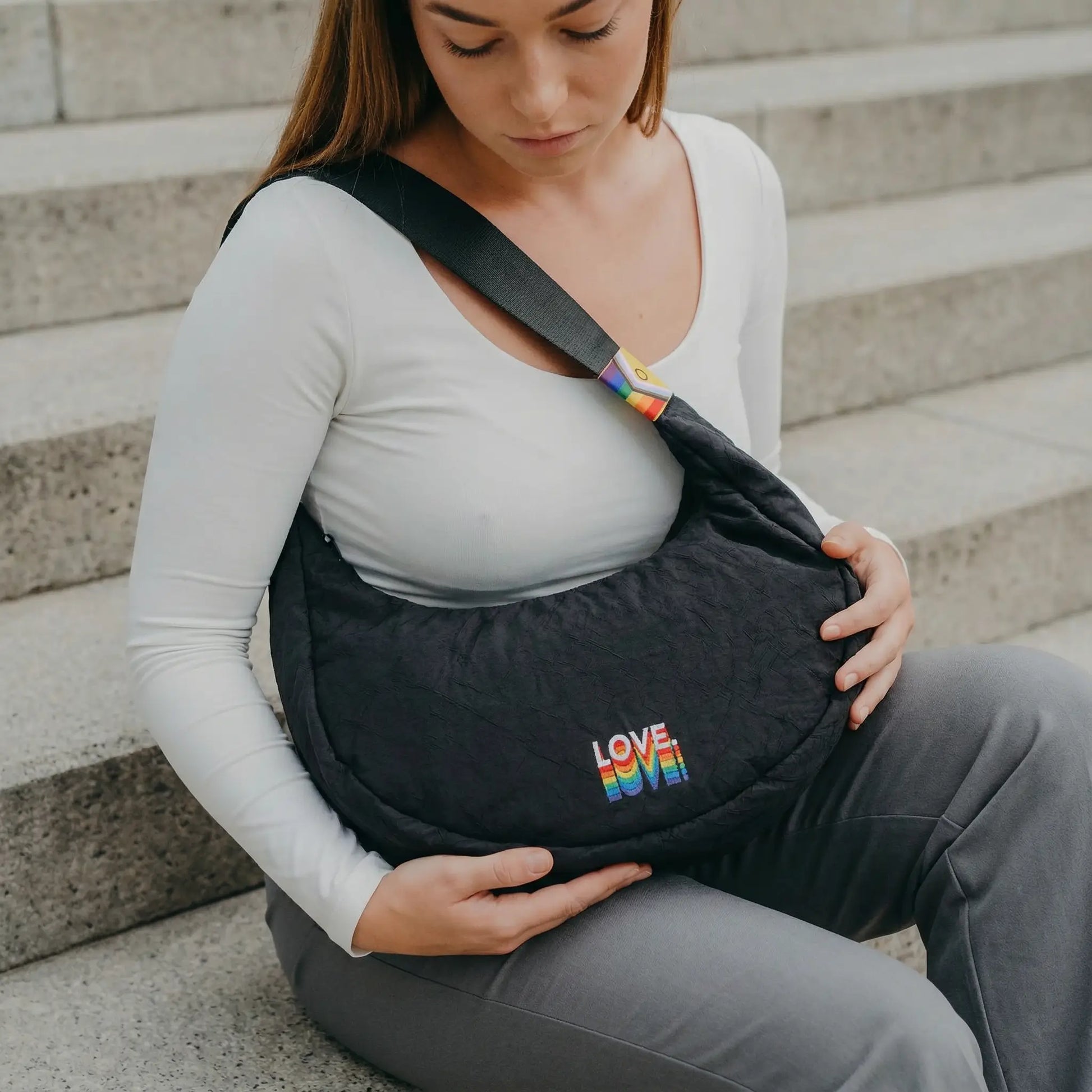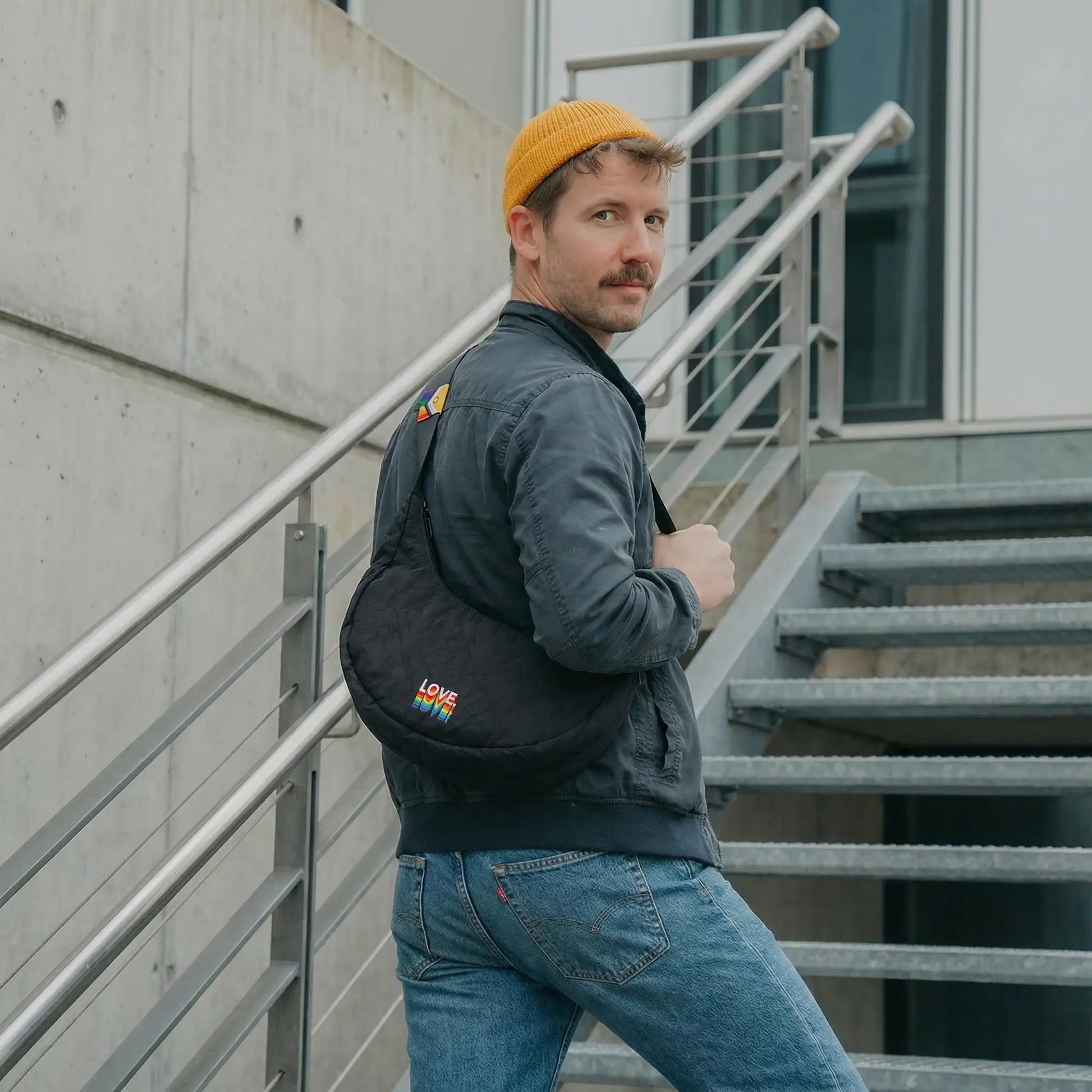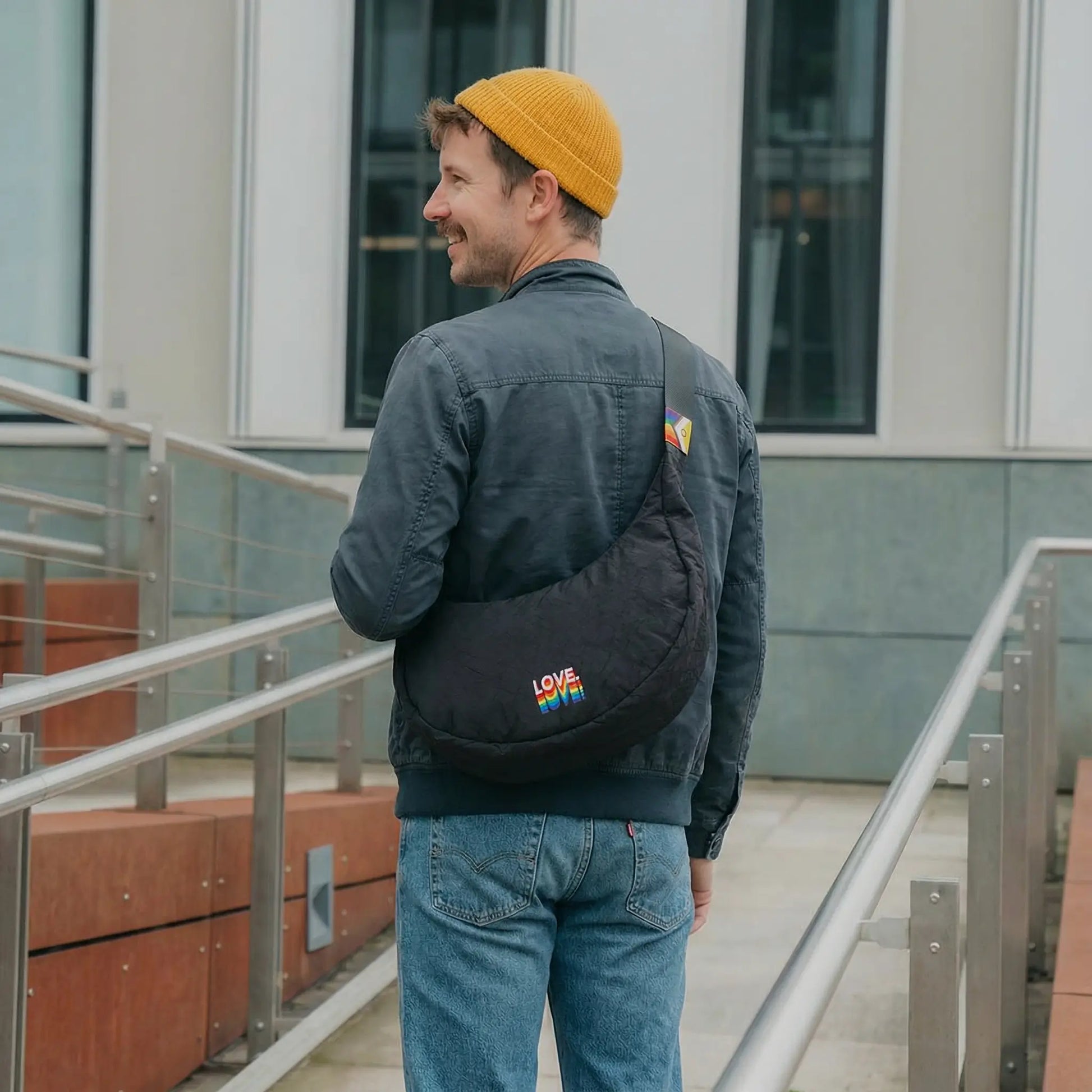 The Pride Edition crossbody bag made from airbags · 9 L volume · Wear a symbol for diversity, acceptance and sustainability.