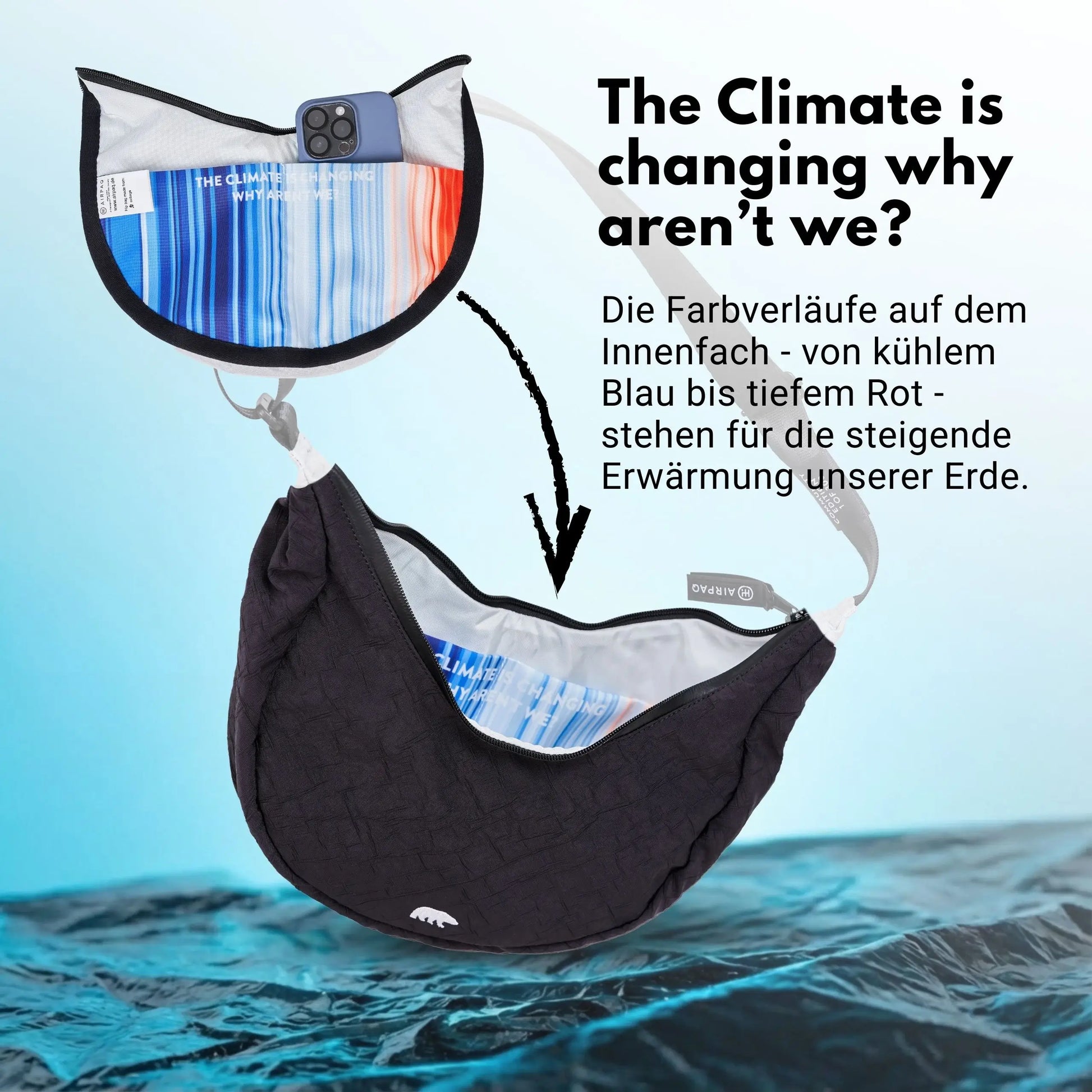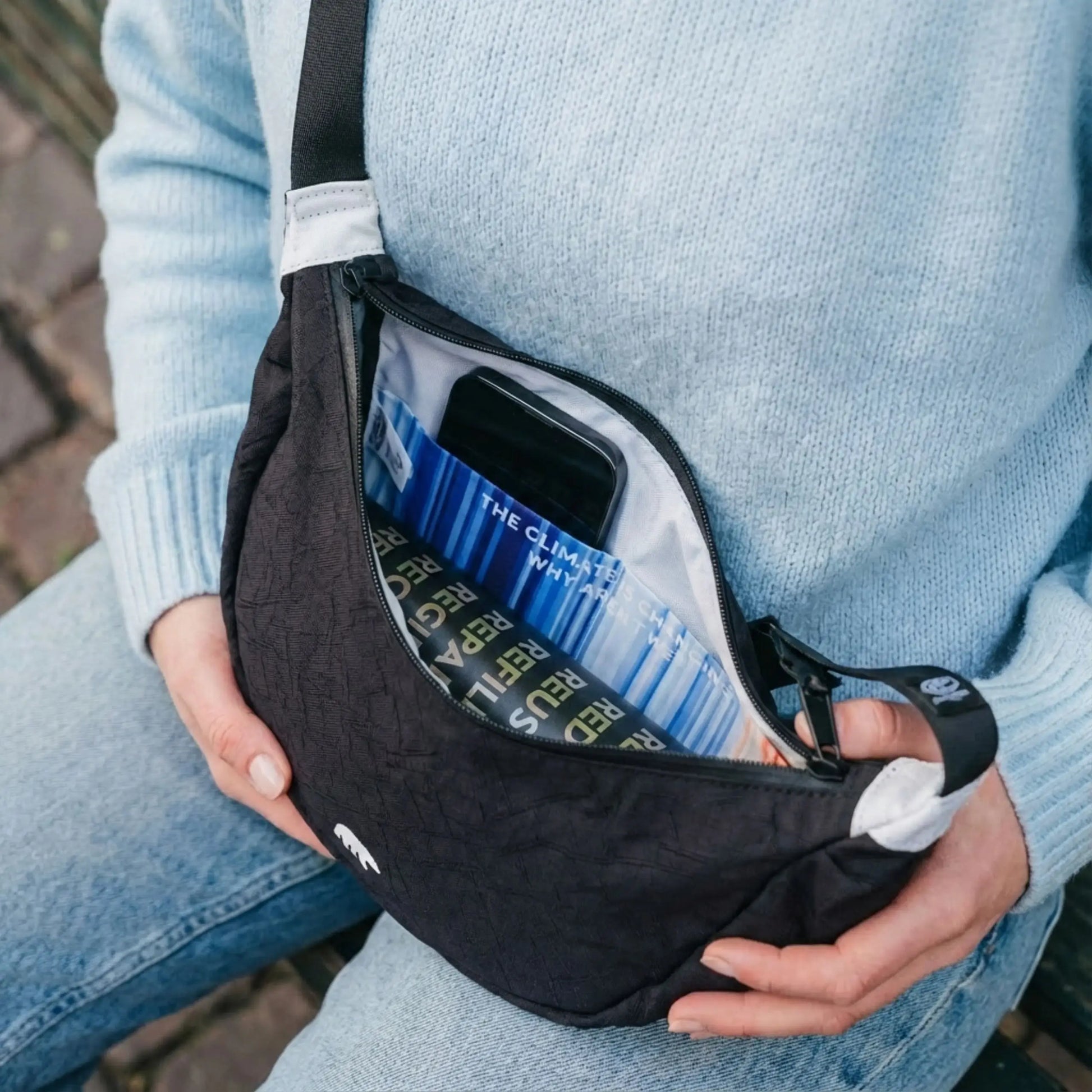 3L Halbmondtasche aus Airbags – So wenig dabei wie nötig und so praktisch wie möglich.
