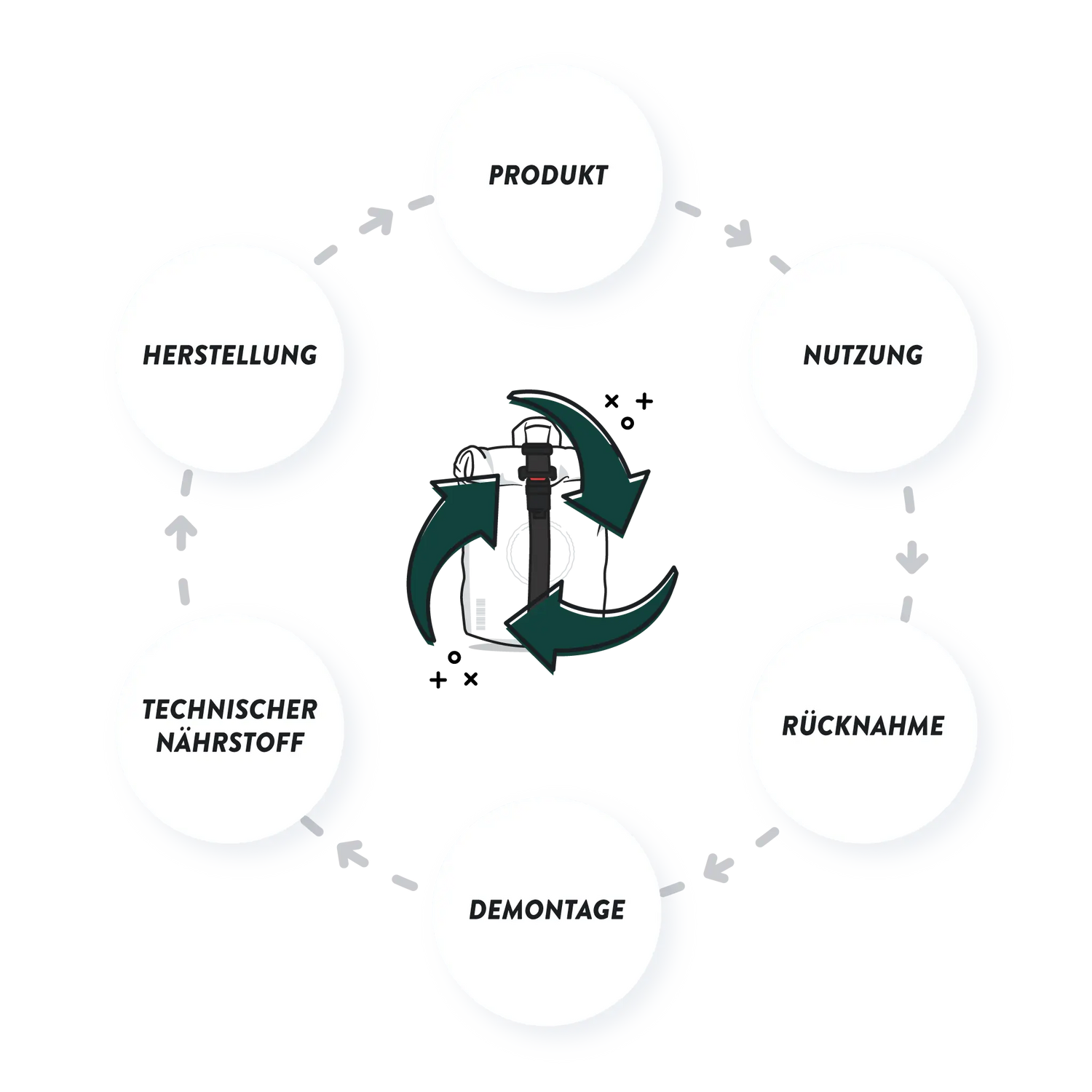 Ein wirklich nachhaltiges Produkt denkt über seine Nutzung hinaus. Deshalb betrachten wir den gesamten Lebenszyklus – von der Entwicklung bis zum Produktlebensende. Mit unserem Circular Return nehmen wir gebrauchte Produkte zurück und schenken dir einen Gutschein für dein nächstes Airpaq-Produkt. So bleibt Nachhaltigkeit im Kreislauf.
