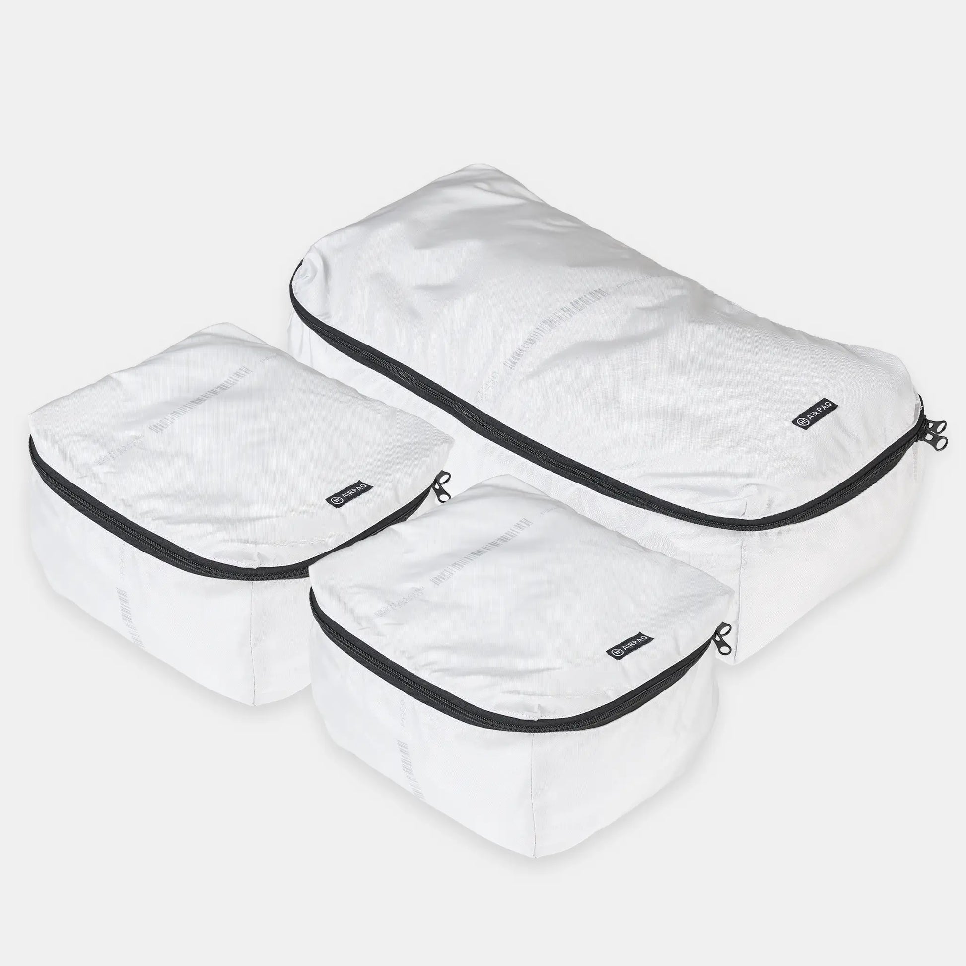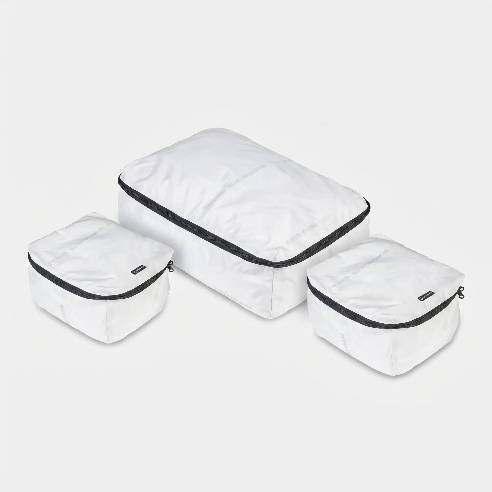 Set aus 3 Packing Cubes aus Airbags – verwandelt deinen Weekender in ein Organisationstalent.