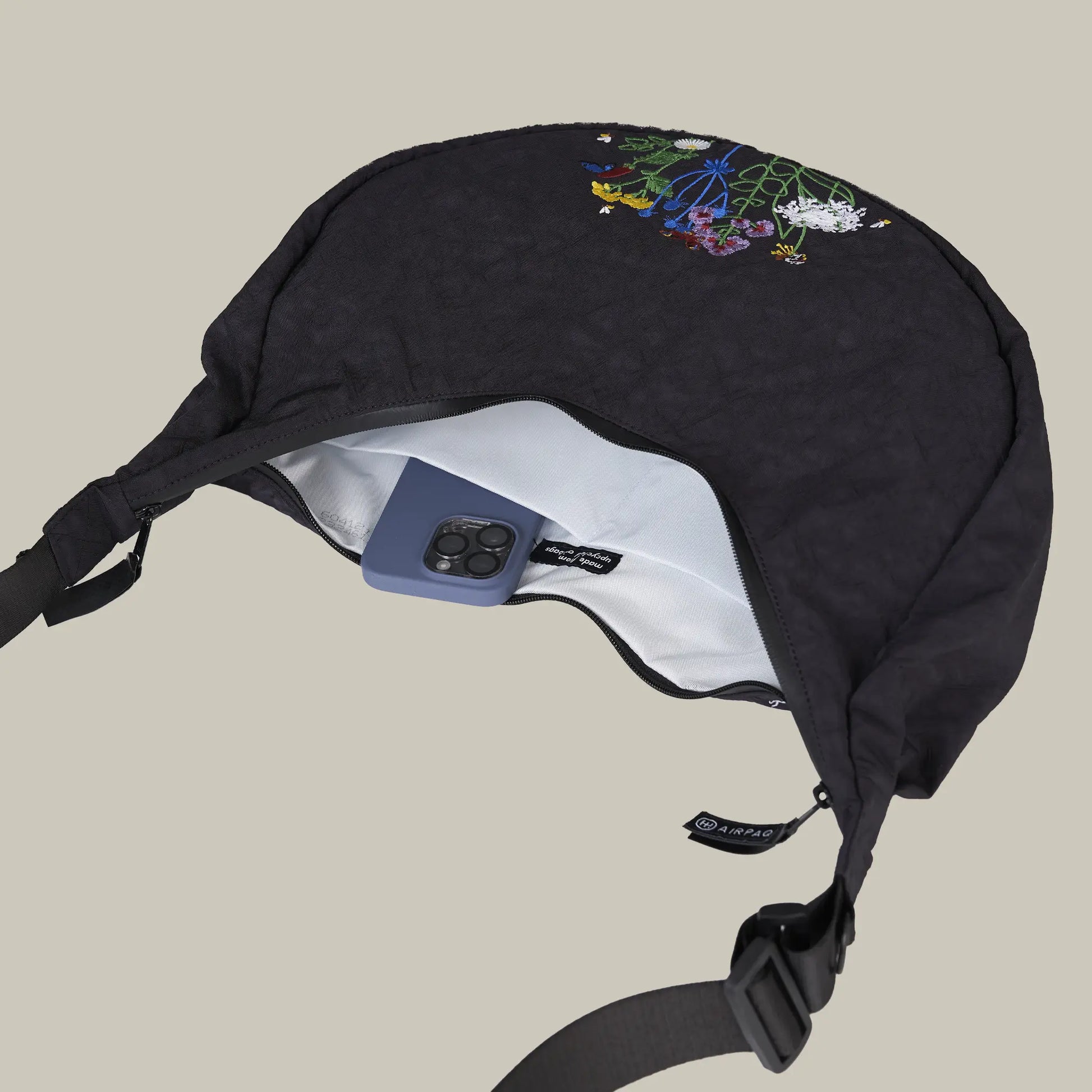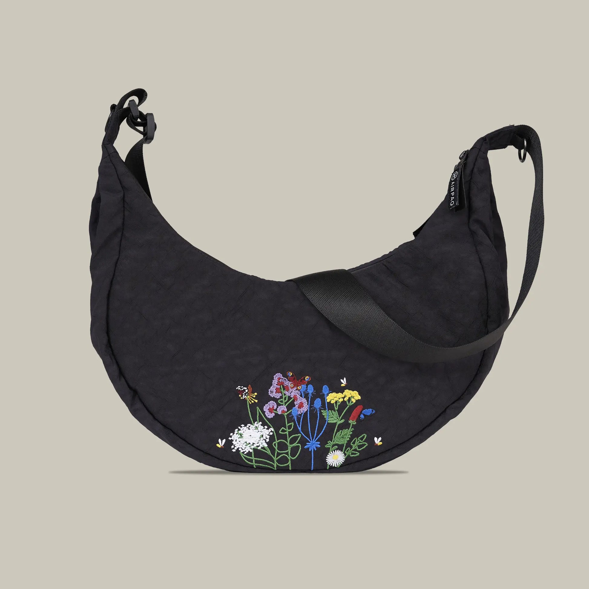 9L Halbmondtasche aus upgecycelten Airbags • Im Design der Robinga-Sonderedition Pflanzen die ich liebe
