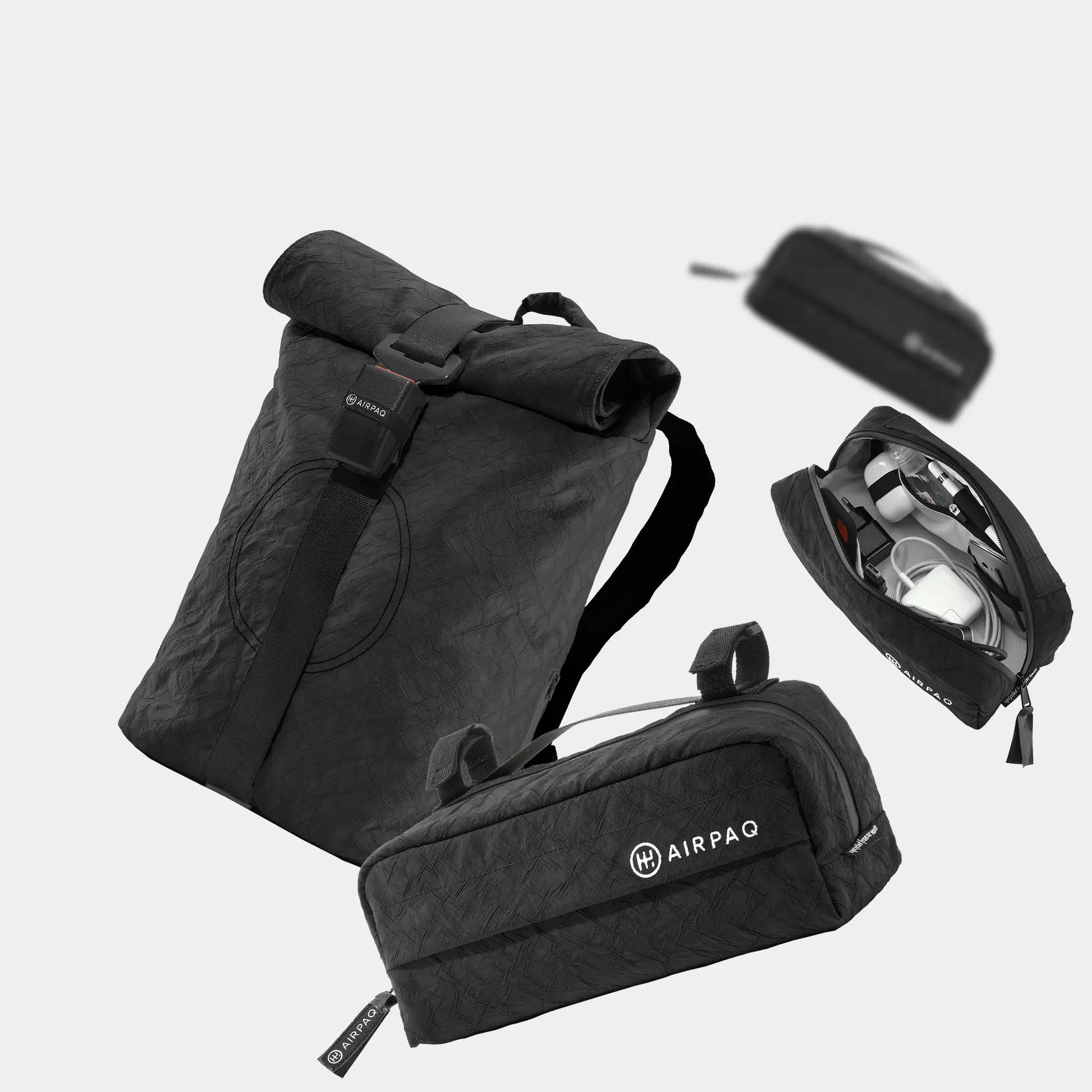Mit gepolsterten Trägern aus Sicherheitsgurten und cleveren Fächern bietet der Airpaq-Rucksack maximalen Tragekomfort und eine durchdachte Organisation. Ob du zur Arbeit pendelst oder auf Reisen bist – du bist bestens ausgestattet und hast alles griffbereit.