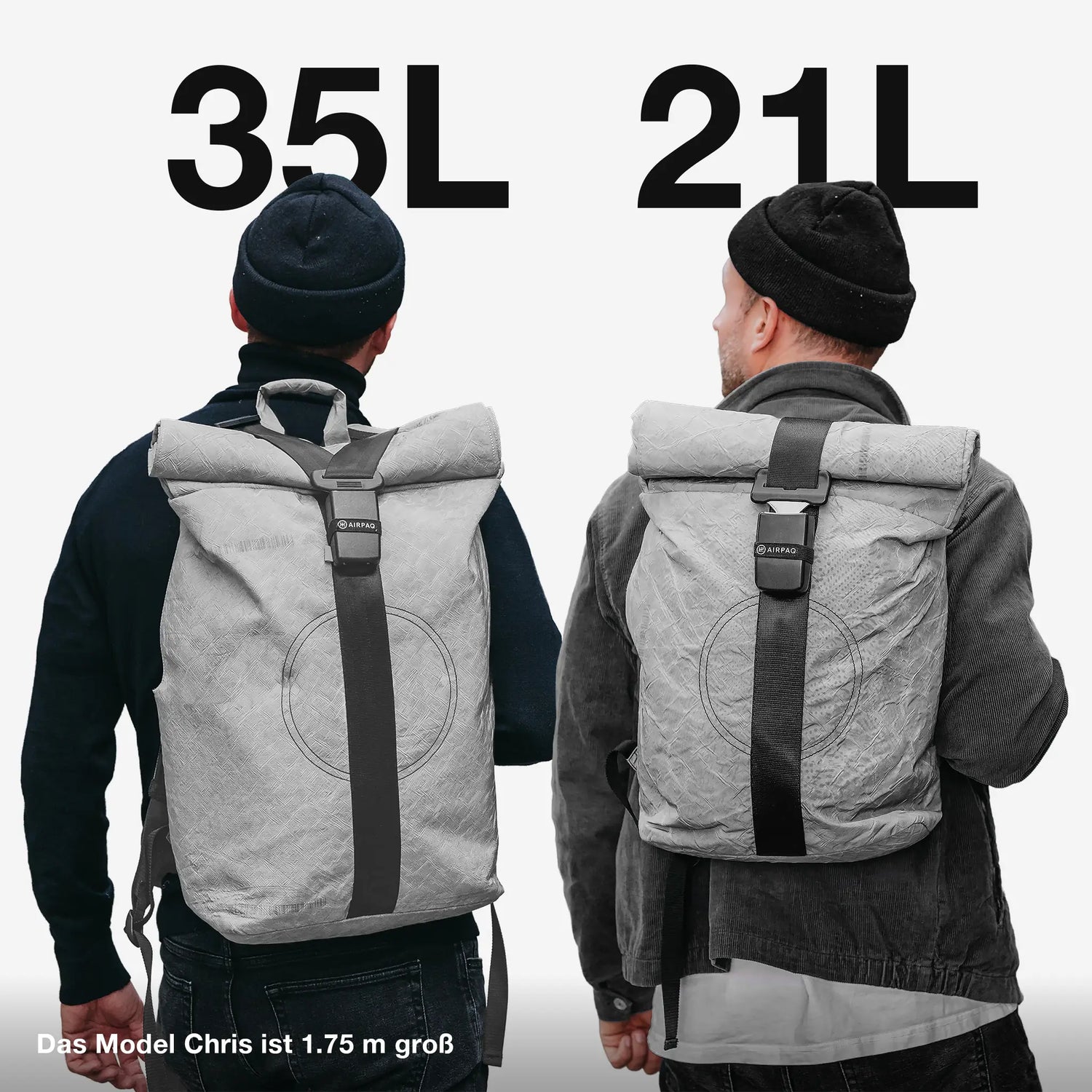 Hergestellt aus Airbag-Materialien, die für extreme Belastungen entwickelt wurden, hält dein Airpaq-Rucksack länger als viele andere. Das spart dir nicht nur Geld, sondern schont auch die Umwelt, weil du ihn nicht nach wenigen Jahren ersetzen musst.