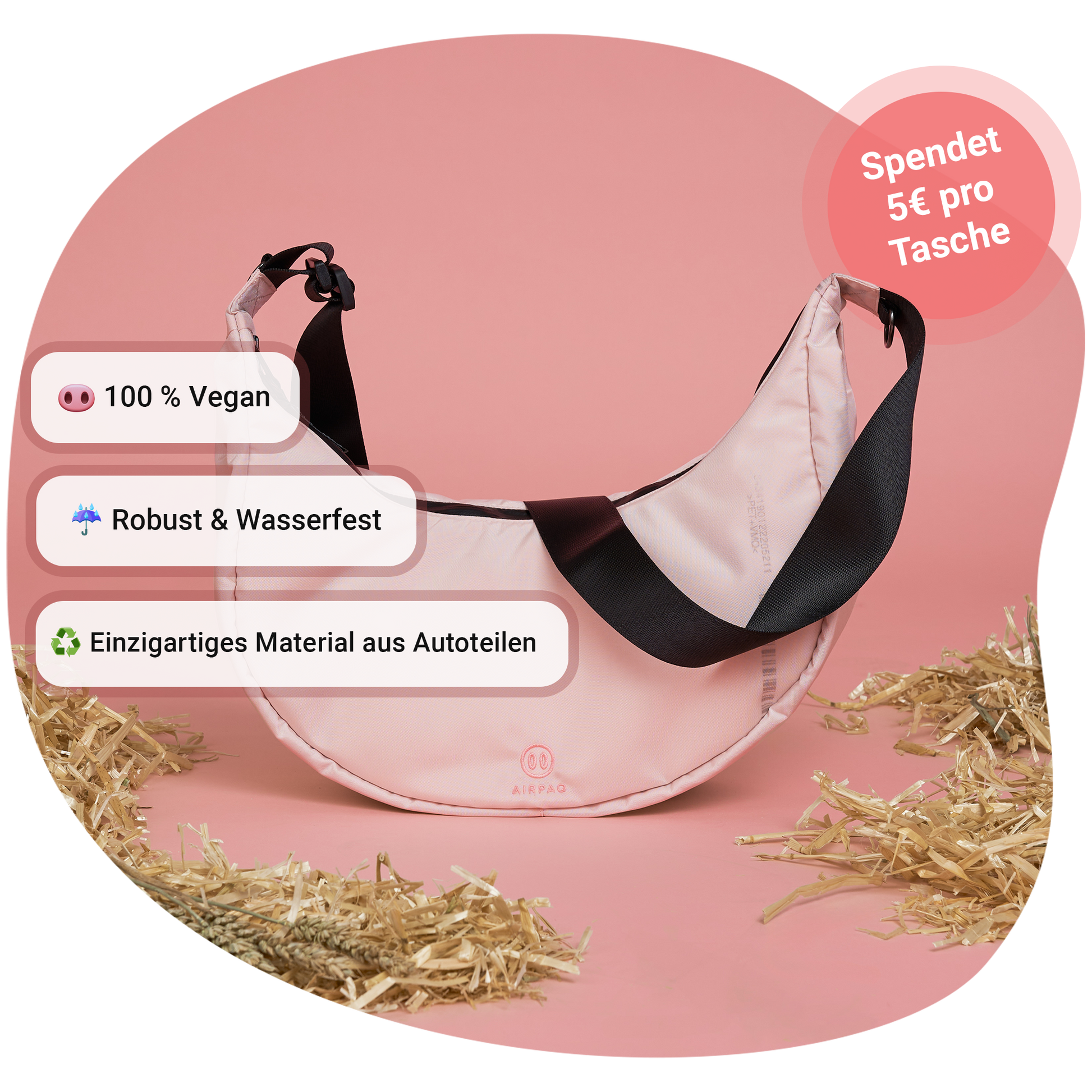 Die Produkte der Schweine-Edition bestehen aus hochwertigen, in Europa upgecycelten Materialien – z. B. Airbagstoff und Sicherheitsgurten, die in der Autoindustrie keine Verwendung mehr finden. Sie werden mit viel Handarbeit unter fairen Bedingungen gefertigt. Zusätzlich fließt ein Teil jedes Verkaufs direkt an Team Tierschutz.