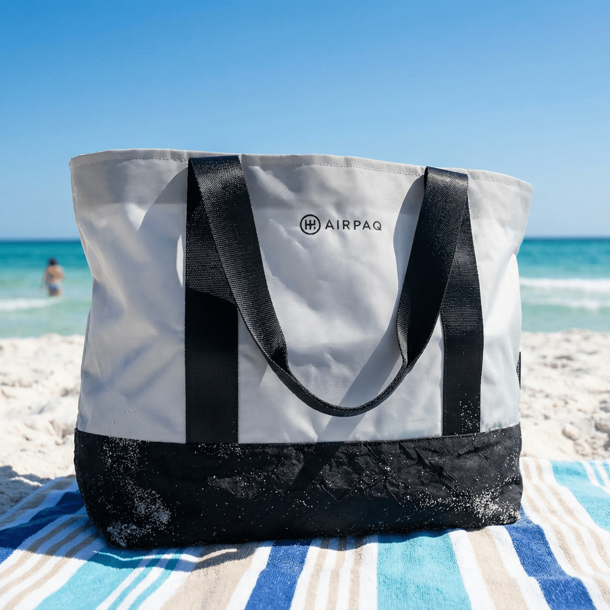 Tragetasche aus Airbags – Ideal als Einkaufs- oder Strandtasche.
