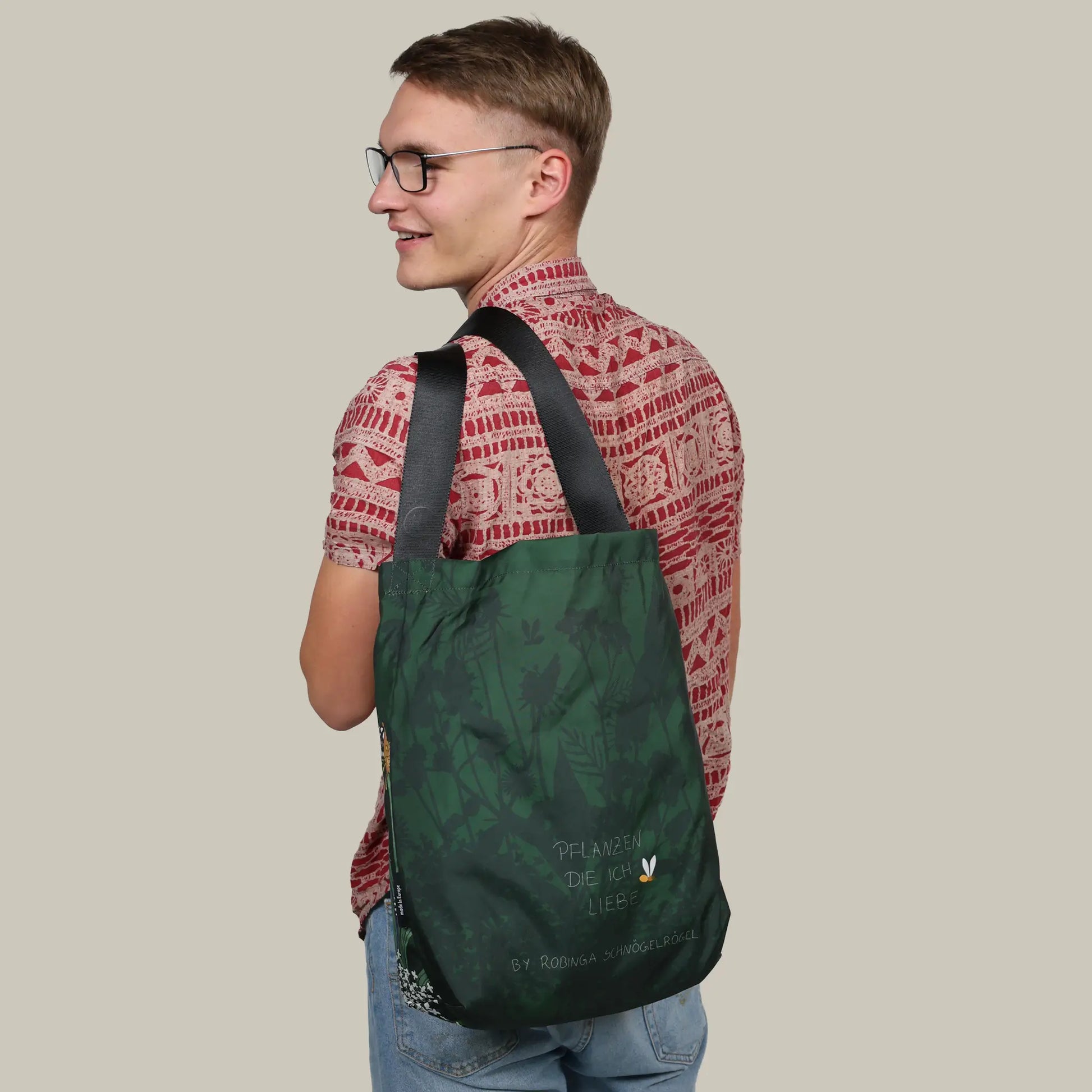 Tragetasche aus upgecycelten Airbags & Sitzgurt • Im Design der Robinga-Sonderedition Pflanzen die ich liebe
