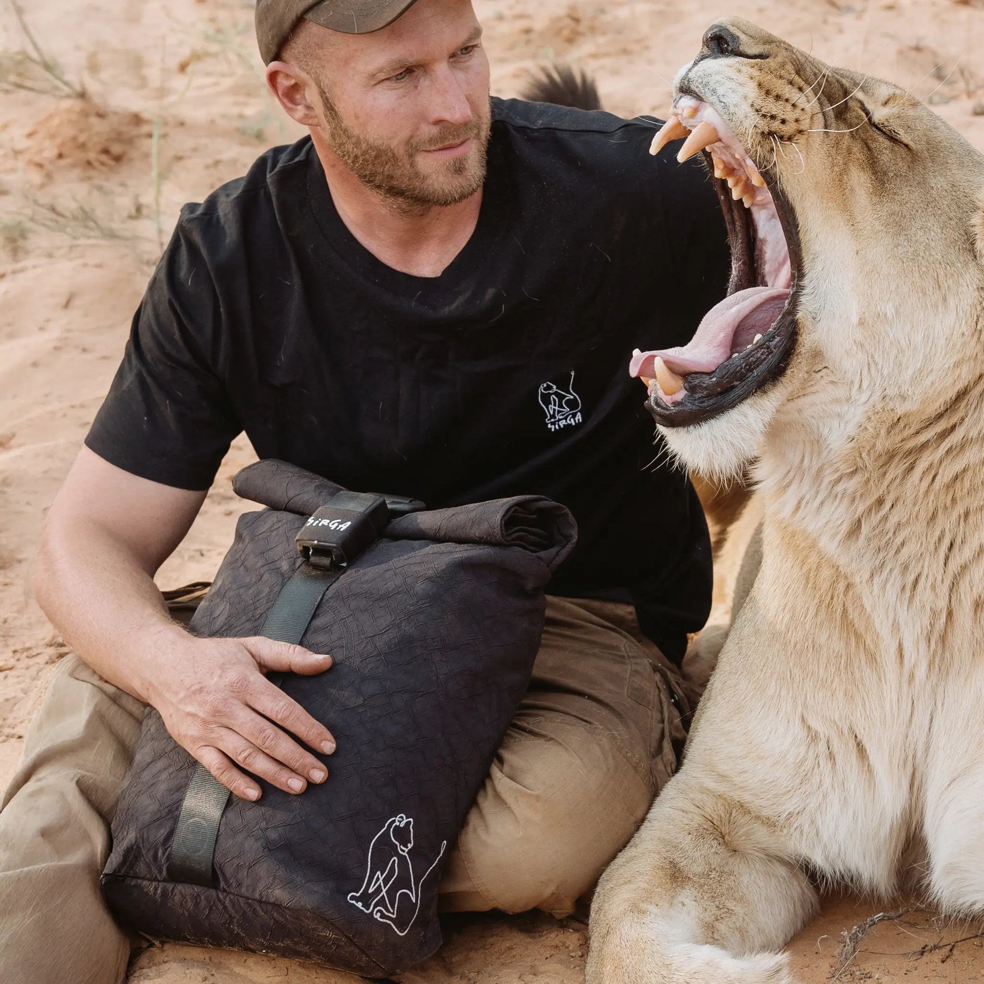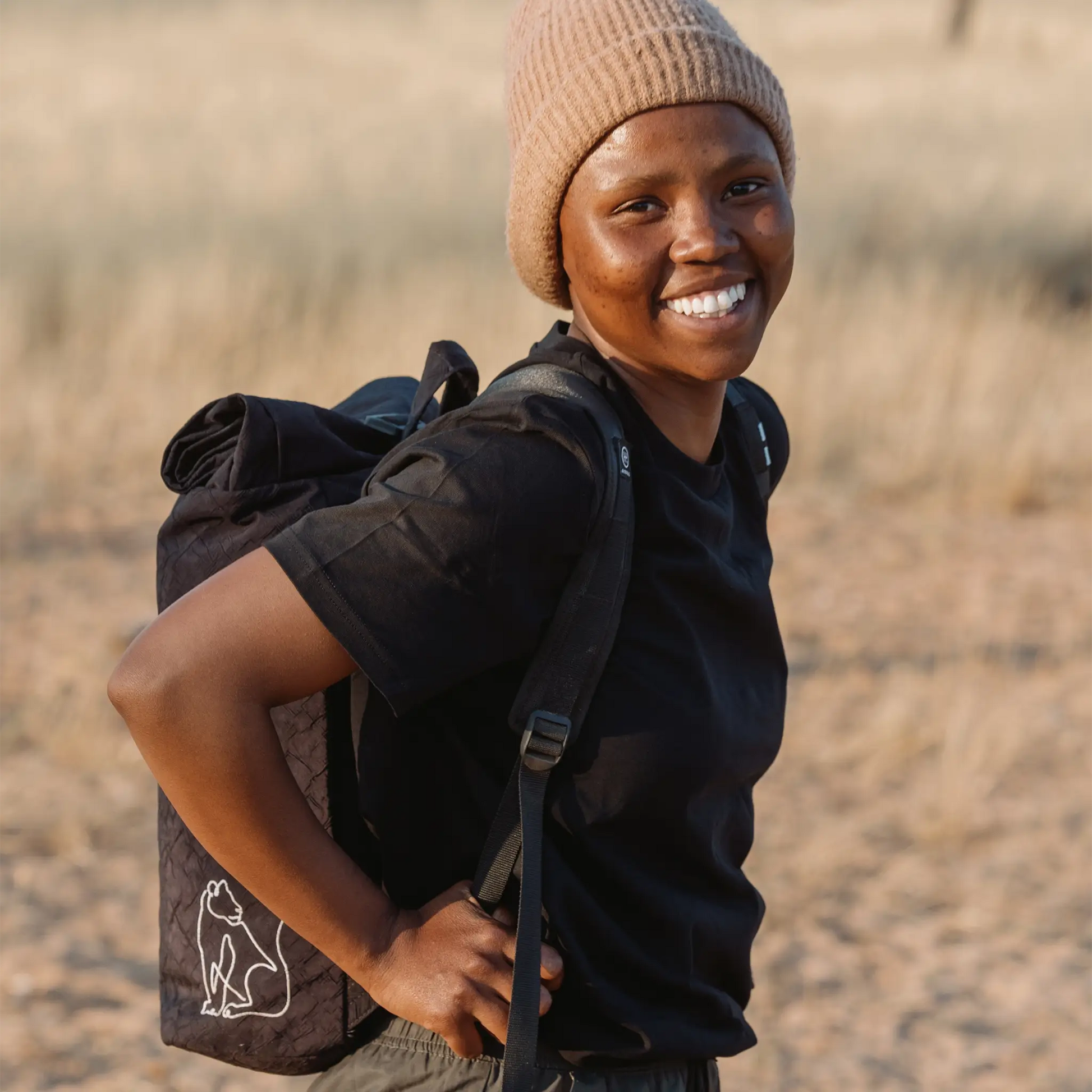 At the Modisa Wildlife Project, Valentin works with local communities to manage 170 km² of protected land in the Kalahari. The approach is holistic: conservation, education, employment. To fund this work, we’ve created something meaningful – a limited collection of bags made from upcycled airbags and seatbelts. Every bag supports Modisa directly – no middlemen, no overhead.